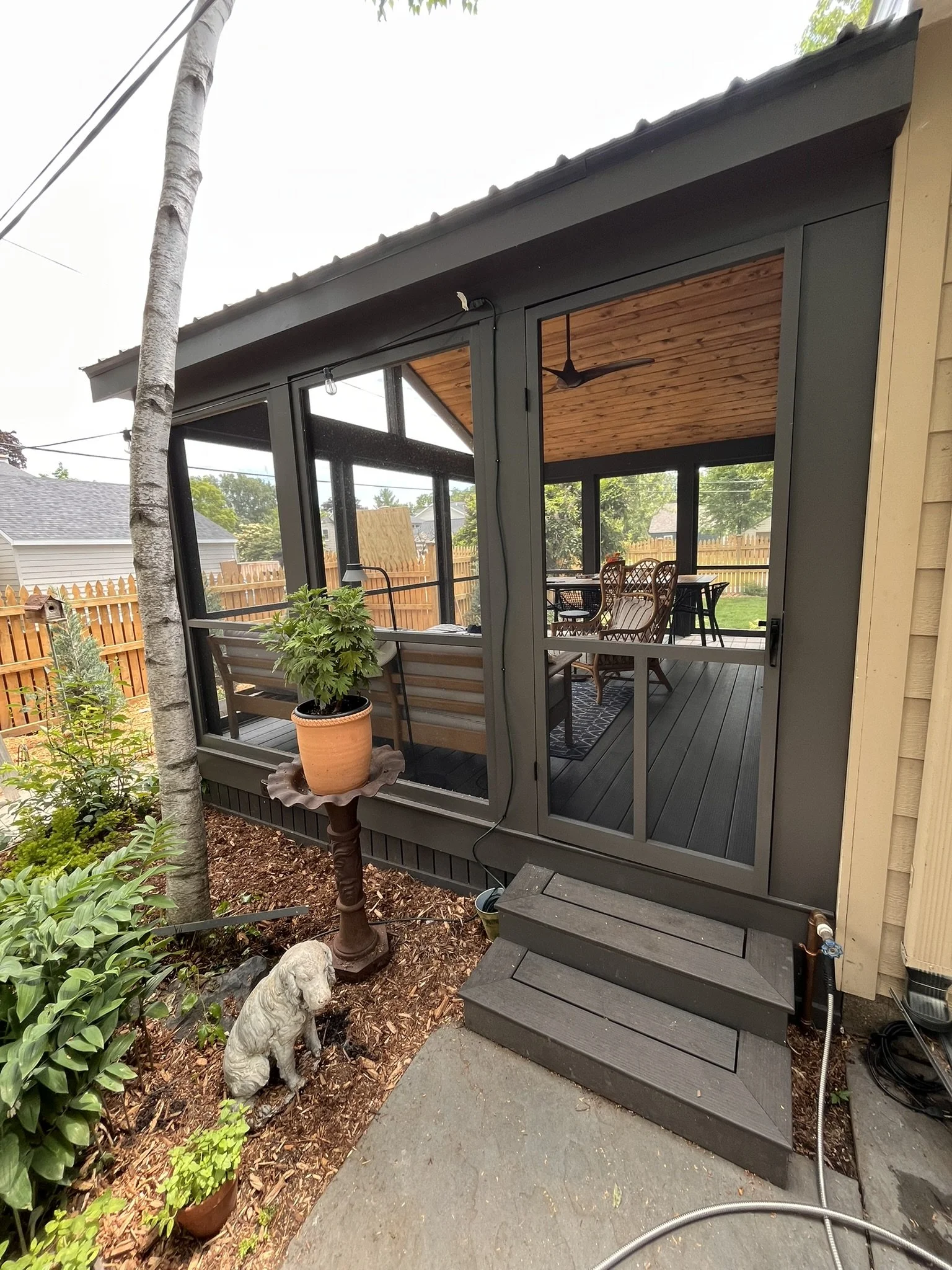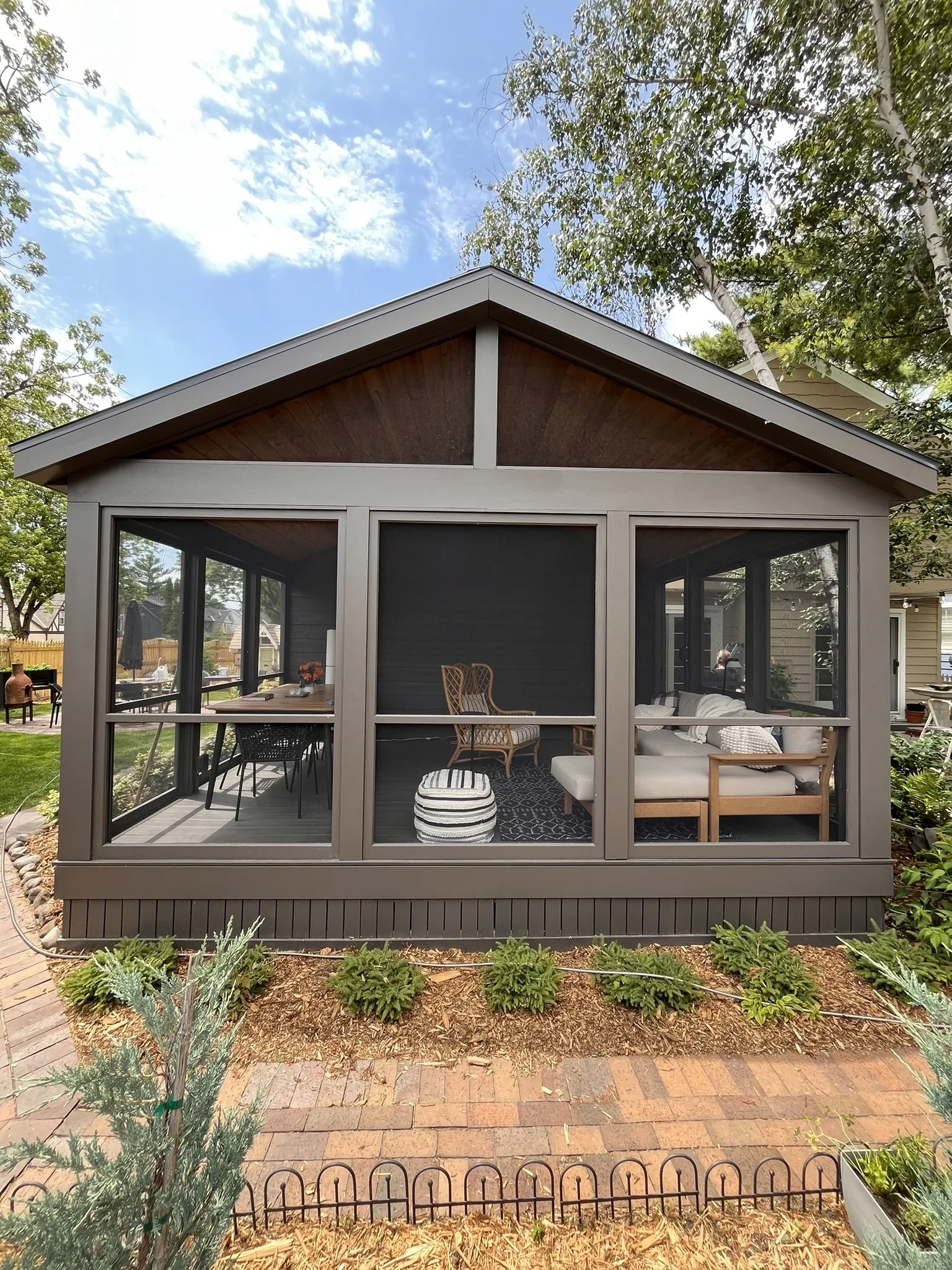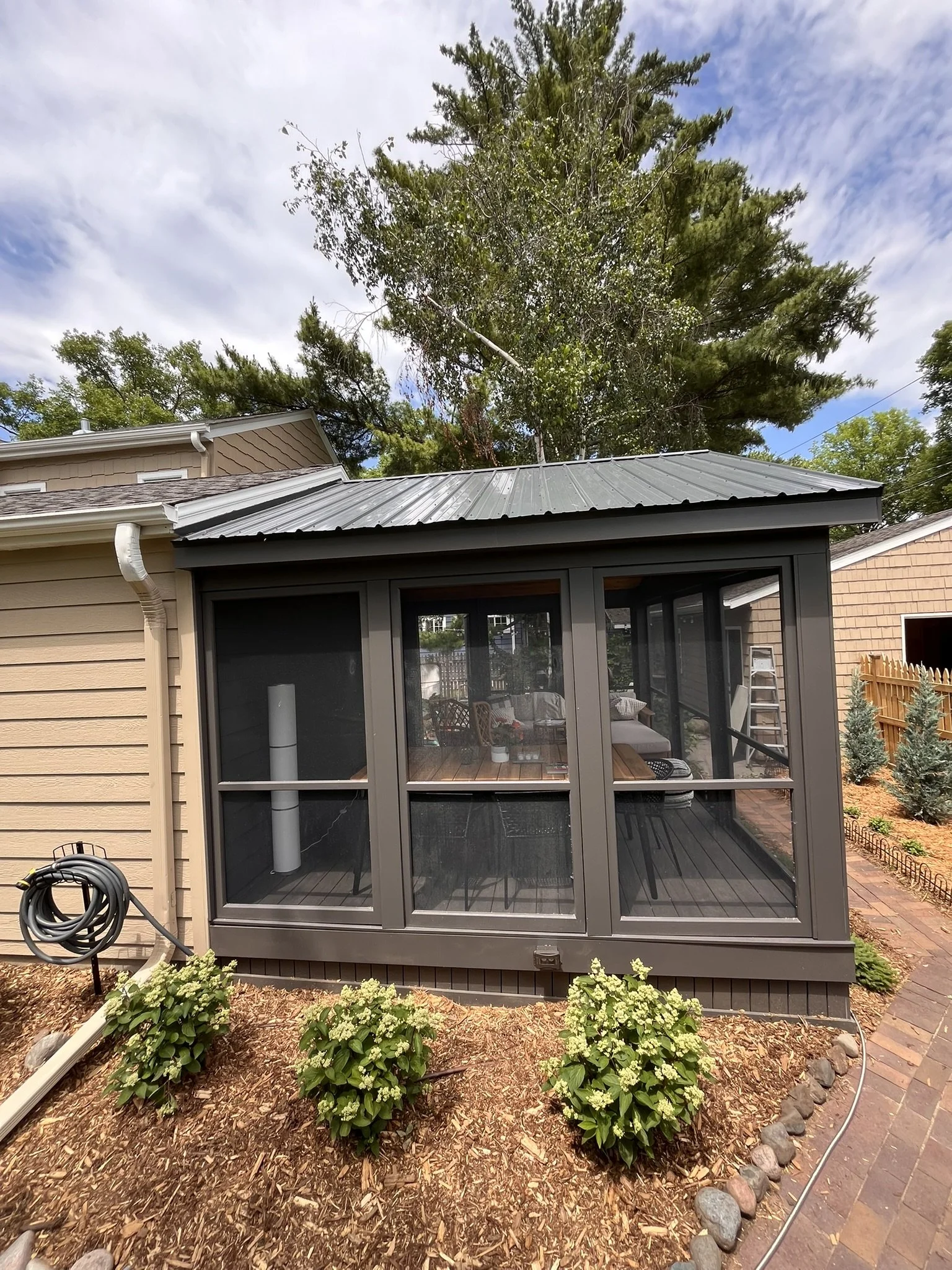 Screened in Deck - 16' x 16' fully screened with TimberTech Legacy Espresso Decking, 30yr+ warranty trim, metal roofing, custom skirting